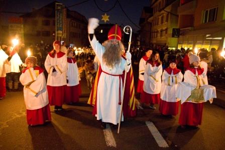 Jeweils am Sonntag vor dem 6. Dezember zieht der Samichlaus aus dem Herrenwald durchs Dorf zur Kirche, begleitet von Esel, Schmutzli, Dienern, Geislechlöpfern, Treichlern und ganz vielen Kindern mit Laternen, Fackeln und Glocken. Am Strassenrand säumen hunderte von Zuschauerinnen und Zuschauern seinen Weg und hören am Schluss die kurze Ansprache vor der Kirchtreppe. Der stimmungsvolle Einzug ist nicht mehr aus dem kulturellen Jahreslauf der Gemeinde und Pfarrei wegzudenken.